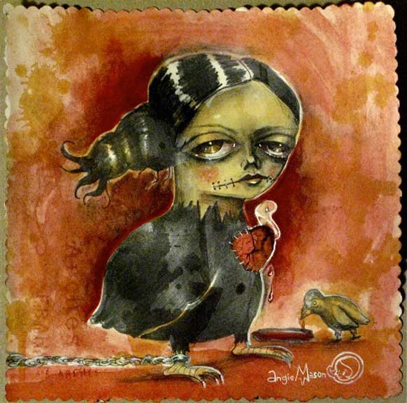 "Pigeon Hold Girl" acrilico su carta con cornice fatta a mano (39x31 cm) / mixed media acrylic on paper customized frame (39x31 cm) 600 EU