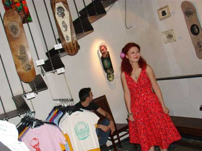 Gallery Genova presenta: "POP FLEA MARKET" I due artisti rielaborano ex voto, tavole da skate, strumenti musicali e altri 'found objects', plasmandoli con la loro fantasia ed ironia. Per molti anni, l'artista Simone "El-Rana" ha girato l'Italia in cerca di ex voto antichi, comprandoli da vecchie sacrestie. Usando oggetti come tavole da skate o strumenti musicali, crea una sorta di 'cornice' intorno all' ex voto, aprendo una finestra su un altro mondo. Il pittore Leonardo Ermini decora queste 'cornici' usando iconografie di vecchie tavole mediche dell'800, gioccatoli antichi, tattoos, ed icone, per raccontarne la storia. Oltre a queste opere fatte in collaborazione tra i due artisti, ci saranno anche alcuni pezzi personali di Simone e Leonardo. Gli artisti saranno presenti all'inaugurazione della mostra: sabato 30 maggio dalle 19,00 alle 22,00. MF Gallery Genova, vico dietro il Coro della Maddalena 26A Genova. "Pop Flea Market" rimarra` in mostra fino al 4 luglio, 2009. Le opere possono essere anche viste ed acquistate in internet su: www.MFgallery.net Al piano superiore della galleria, resta aperta la collezione semi- permanente di MF Gallery Genova, con opere di piu’ di 20 artisti internazionali del "Pop Surrealism" e "Lowbrow Art", comprese le opere dei due propietari, Martina Secondo Russo e Frank Russo. MF