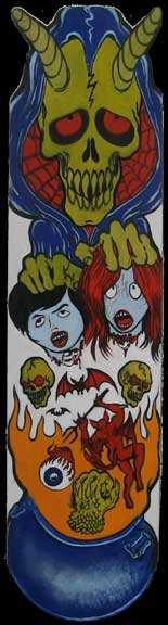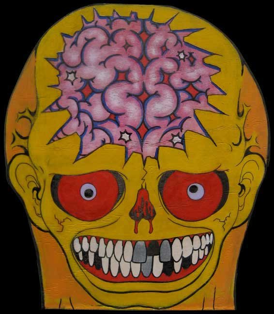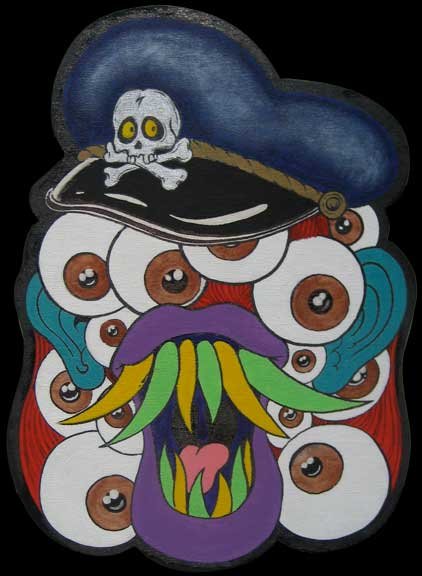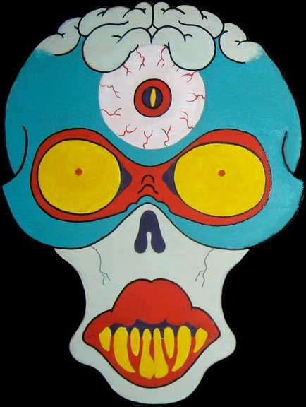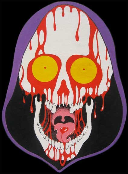 York Artist, co-owner of the new MF Gallery Genova presents Frank Russo is an artist from Brooklyn, NY, who has been drawing comic books since the age of nine. His art fuses a life-long love for trash culture and fast music with a wide variety of styles and media such as comics, paintings, toys, props and costumes. For his first ever solo show in Italy, Frank Russo will present a new series of acrylic paintings on wood… colorful psychedelic monsters… scary and friendly… skulls, aliens, robots, witches… pop images coming out of the world of skateboarding and 1980’s cartoons. All of the works in this show were produced during his stay in Genova, and are therefore inspired by the colors, sounds and characters of the “Suberb City”. The