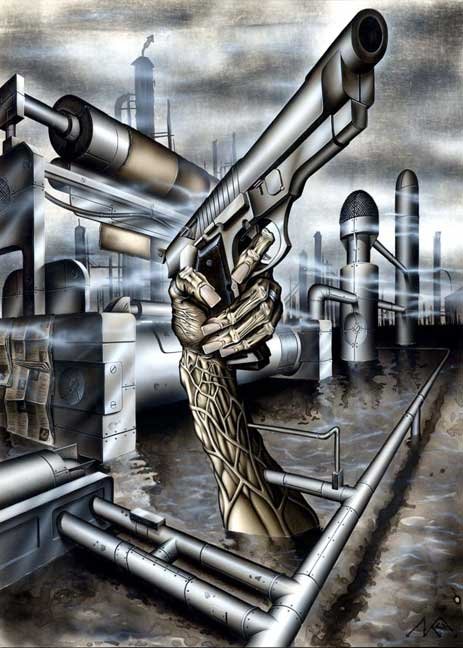 “L'immagine crudele e a volte apocalittica che offre Luca è parte integrante del modo di vedere di oggi, e come tale appartiene alla vera pittura contemporanea. Naturalmente non ci rivolgiamo qui a chi non va oltre al quadro come "prova di bellezza". Questo pittore non intende sedurre gli accademici, semmai intende sedurre in assoluto. Il suo pubblico naturale è innanzitutto disinvolto, disinibito, lungimirante e…stavo per scrivere "giovane", ma poi non è vero. L'età non c'entra. C'entra la capacità di proiettarsi in una dimensione che non ha retroconfini, che colpisce per la sua crudezza e che vagamente, ma molto vagamente, rimanda a certi momenti surrealisti per la sottile ma massacrante ironia delle sue rappresentazioni. “Le opere di un pittore come Luca Crema hanno valore di simbolo onirico e profondo, stimolante, rivoltante e sicuro, come un riconoscere, un deplorare, un temere, un amare alla follia questo mondo feroce nel quale dobbiamo vivere. La glaciale perfezione del disegno e della composizione, i temi appena sopportabili, i colori provocanti e le scene strazianti sono il messaggio con il quale Luca Crema ci costringe con la sua pittura come specchio della nostra realtà - oltre alla sua - ad assumere attraverso l’estetica e l’arte tutti gli orrori umani, così umani…” (di Jean-Michel Carasso; giornalista free-lance, curatore e critico d’arte contemporanea a Firenze.) “Industrial Mediabook”