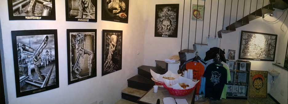 Il Coro Della Maddalena 26A Genova, Italy. MF Gallery Genova e` aperta al pubblico dal lunedi` al venerdi, (h. 12,30/14,30 e 19,30/22,00) e al sabato (h. 19,30/22,00). Inoltre, per visite su appuntamento, contattare Enrico (348-419-3913) o Alessandra (320-640-5504). Per maggiori informazioni, contattare Martina Secondo Russo MFgalleryGenova@gmail.com MF Gallery, una delle migliori gallerie di New York nel mondo del Pop Surrealism/ Underground Pop Art, e` presente a Genova dal gennaio del 2009. Il piano superiore di MF Gallery ospita una collezione semi-permanente con opere di piu di 20 artisti internazionali appartenenti al movimento, inclusi Liz McGrath, Mark Riddick, Ciou, Fernando Carpaneda, Fidia, Nicoz Balboa, Massimo Gurnari e altri... |