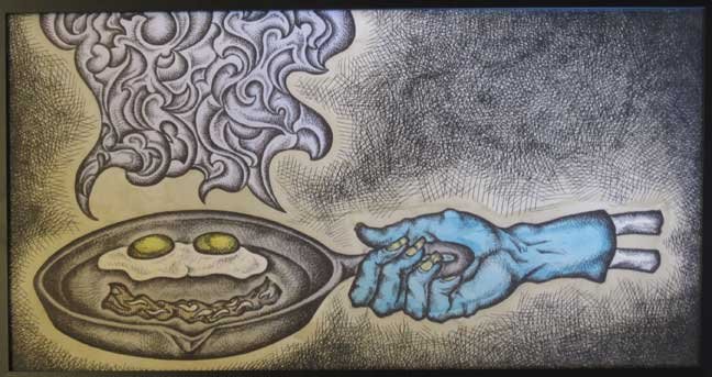 “Disembodied Pieces” inchiostro e acquarello su cartoncino / ink and watercolor on board (50cm x 28cm framed) € 600