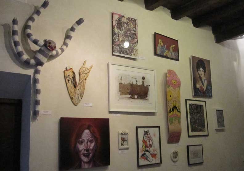 served and many of the artists will be in attendance. MF Gallery Genova is located right around the corner from Garibladi: Vico dietro il coro della Maddalena 26A. Gallery hours are from Monday to Friday (12:30-2pm and 7:30-10pm) and on Saturdays (7:30-10pm) or by appointment. MF Gallery, one of the best Pop Surrealism/ Underground Pop Art galleries in New York City has been open in Genova since January 2009. The upstairs floor of MF Gallery Genova hosts a semi-permanent collection with works by more than 20 international artists.