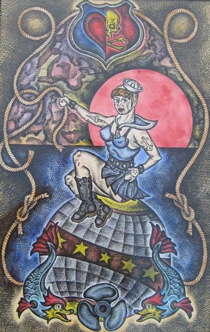 “Chest Tattoo For The Lovesick Sailor” Ink and Watercolor on Illustration Board / Acquarello e Inchiostro su Carta (28x43cm) € 170