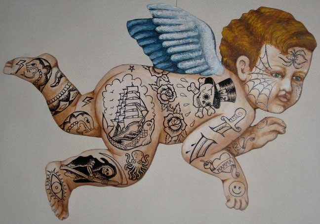 “Tattooed Angel” Acrylic and Enamel on Plywood / Acrilico e Smalto su Legno € 500
