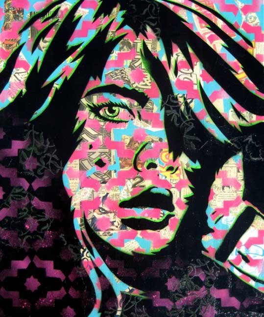 “Snake Bite” Stencil Collage on Canvas 20"x24" $550