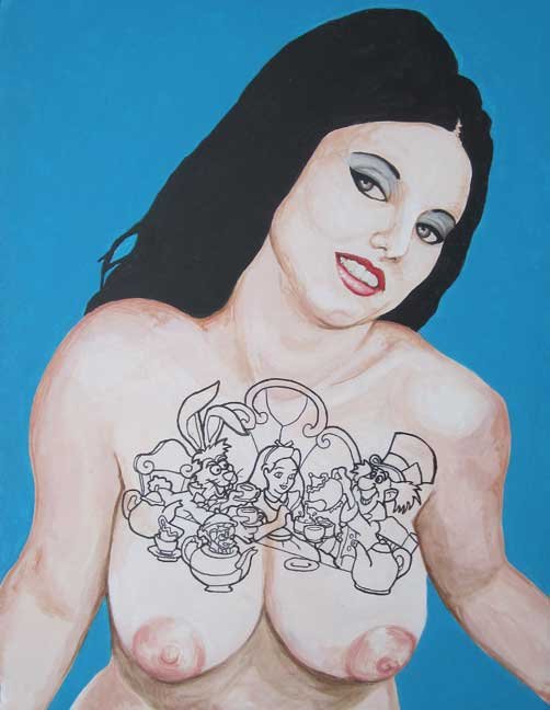 “Tattooed Limb- Disney” Acrylic and Enamel on Wood $150