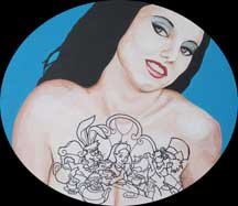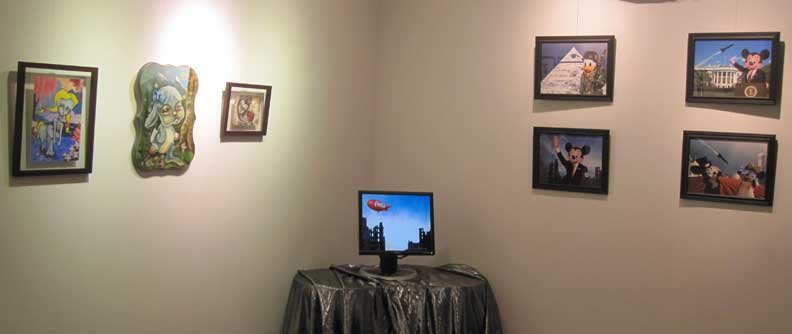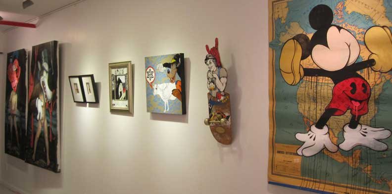 In honoring the impact these characters have had on our artistic lives, MF Gallery has curated a group show of art that is inspired by Disney's many characters and films. For the first time ever, MF Gallery has invited this group of Italian artists to show in NYC: Max Papeschi creates controversial images by juxtaposing smiling cartoon characters with images of war and destruction... He calls his art "Honest Advertising". Fidia transforms cute characters into lovable anti-heroes. He takes old skateboards- trucks, wheels and all- and carves them into the shapes of the characters, before painting them in acrylics. Elena Bertoni and Simone Romano are a husband and wife team who collaborate under the name "Anonymous Art". They create both large scale oil paintings in which chartoon characters and symbols appear over wallpaper-like backgrounds, as well as smaller acrylic paintings collaged over old religious texts. Nicola Alessandrini uses themes from Rennaissance religious art and mixes them with cartoon characters and geometric shapes. He works both on paper and on large scale canvases. These Italian artists, most of which are regulars at the MF Gallery in Genoa, will be showing for the first time in New York City alongside MF Gallery Artists: Joe Simko, Drew Maillard, Frank Russo & Martina Secondo Russo; as well as Angie Mason, Robert Craig, Emma Louise, Robert Bowen and Jason D'Aquino. Please join us for the opening party on Saturday, January 29th from 7 to 10 pm. Refreshments will be served and many of the artists will be in attendance. Admission is free and open to all ages. During the opening party, there will also be a film crew working on a documentary about the Pop Surrealist Painter Robert Craig. The art in this show will be on display until the beginning of March, but MF Gallery will be open by appointment only during this period. Contact Martina or Frank at (917)446-8681 or info@MFgallery.net to make an appointment to visit the gallery. The entire show is also available for viewing and purchasing online at: www.MFgallery.net. MF Gallery is located at 213 Bond Street, between Butler and Baltic Streets in the Gowanus area of Brooklyn, NY. Take the F or G to Bergen, (Exit at Bergen and Smith, walk 2 blocks east on Bergen. Turn right on Bond. Walk south on Bond for 3 blocks.) the A to Hoyt/ Schermerhorn, (Exit at Schermerhorn and Bond. Walk South on Bond for 8 blocks.) or the R to Union. (Exit at Union and 4th ave. Walk west on Union for 3 blocks. Turn Right on Bond. Walk North on Bond for 4 blocks.) For more information, to request high resolution images or to set up interviews, please contact Martina Secondo Russo at info@MFgallery.net or (917)446-8681. |