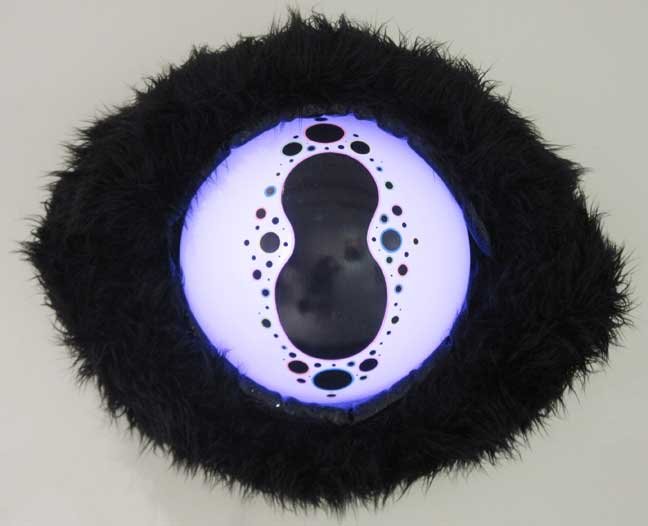 (foam, plastic, vinyl, faux fur, acrylic paint, lighting fixture) $500