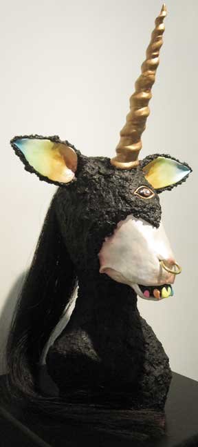 (sculpey, plaster, paper clay, acrylic paint, horse hair, rhinestone) $450