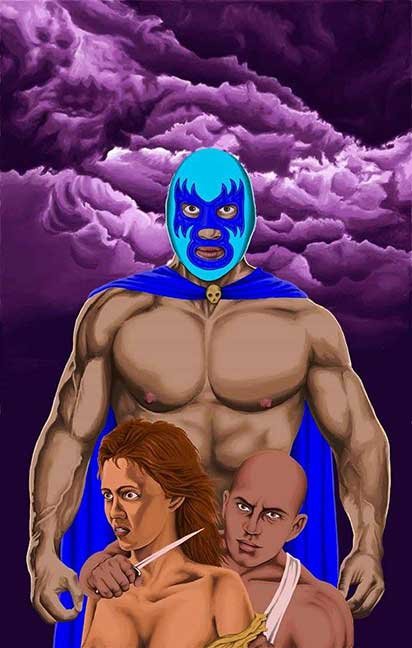 "The Blue Mask vs. The Cartel" (2016) framed giclee print, artist's proof (11"x17") $80