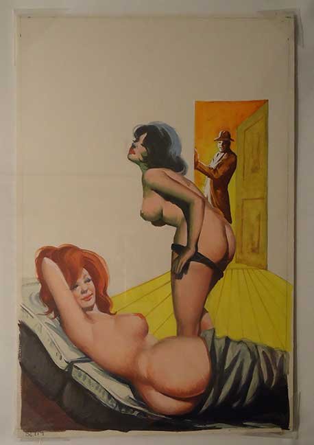“Lust On The Run” (illustration for pulp novel cover, circa 1960's) gouache on illustration board (9”x14”) $2,000