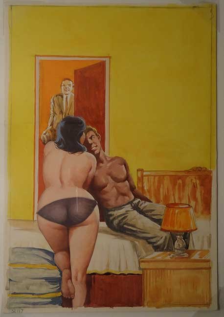 “Deviate Street Stud” (illustration for pulp novel cover, circa 1960's) gouache on illustration board (9”x14”) $2,000