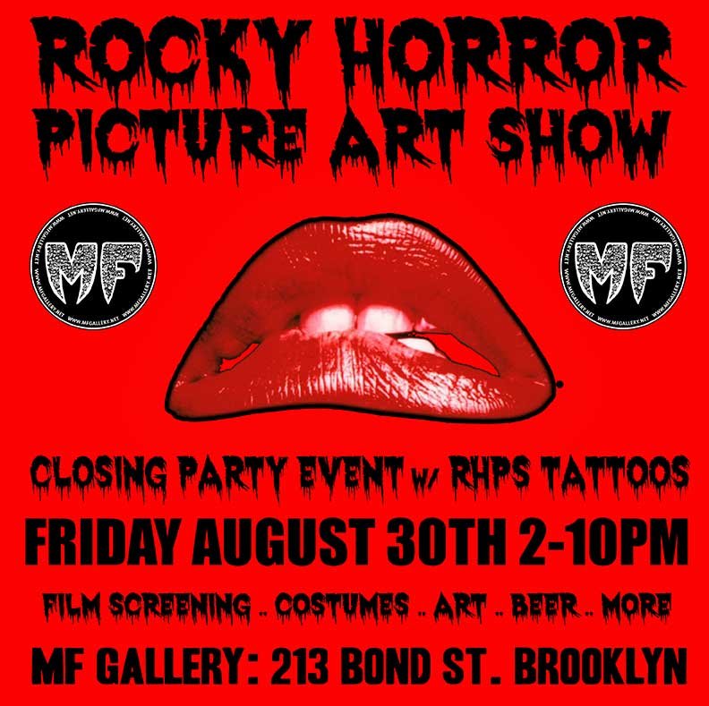 It's astounding! Time is... fleeting. Madness... takes its toll. But listen closely... On August 3rd at MF Gallery: the world's greatest cult musical will take control! LET'S DO THE TIME WARP AGAIN with sculptures, paintings, drawings, prints and more, all inspired by The Rocky Horror Picture Show.... Give yourself over to absolute pleasure: dress up as your favorite character, grab a drink and sing along to the movie, which will be projected right inside the gallery! Some people would give their right arm for the privilege of meeting these artists! And now you can, since many of them will be in attendance on opening night: Joe Simko, Jen Lightfoot, Fred Harper, Sigal Arad Inbar, Sarah Sweeney, Michele Witchypoo, MissElvia, Martina Secondo Russo, Marina., Emma Louise AKA Paint Splatterer, Erica Doll, and Chantal Smith, who will also be offering special RHPS tattoos for the duration of the show! The Rocky Horror Picture [Art] Show opens on Saturday, August 3rd, 7-10 pm at MF Gallery in Brooklyn, NY. The film will be screened several times throughout the evening. Admission is free and open to all ages. (21+ to drink.) Don't dream it, BUY ART!!! After opening night, the show will be open by appointment only, until August 30th. Email: info@MFgallery.net or call/ text: (917)446-8681 to schedule a visit. I see you shiver with antici.......