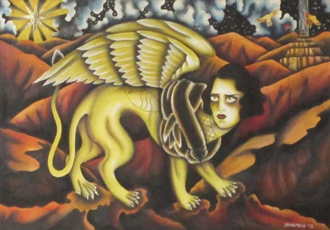"Sumerian Night” mix media on watercolor paper (19”x12”) $300