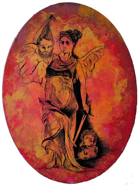 "The Slayer” acrylic and ink on canvas (12”x16”) $200