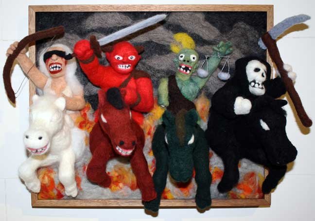 "The Hell Patrol” needlepoint felt (20”x14.5”x8”) $666