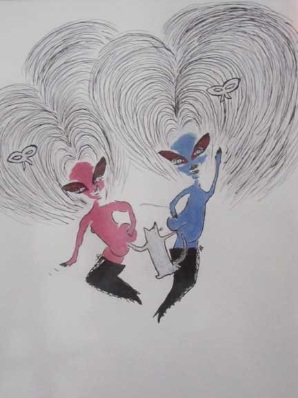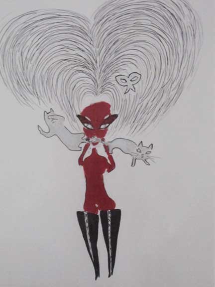 "Sexy Cat Drawings 1&2" Sharpie, Glitter and Acrylic Paint (11”x14” Framed) $1000 each