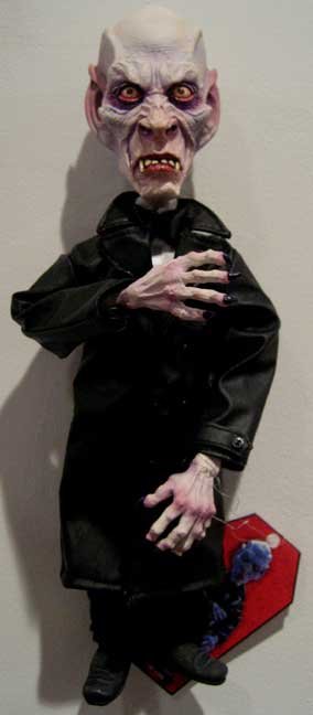 Vampire Doll Head, Hands and Feet Hand Sculpted with Polymer Clay. Poseable Body Made of Fabric, Vynil and Wire- 11" tall $300