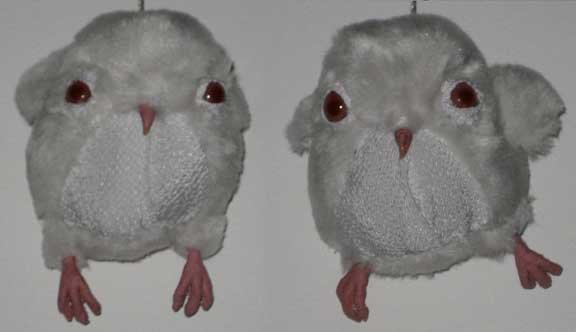 “Owl Pill Pals” Hand Sewn Plush, Chirimen Fabric, Polyfill, Hand Cast Resin, Taxidermy Eyes