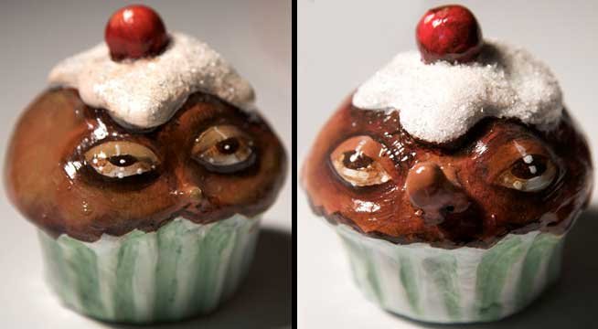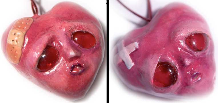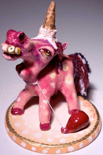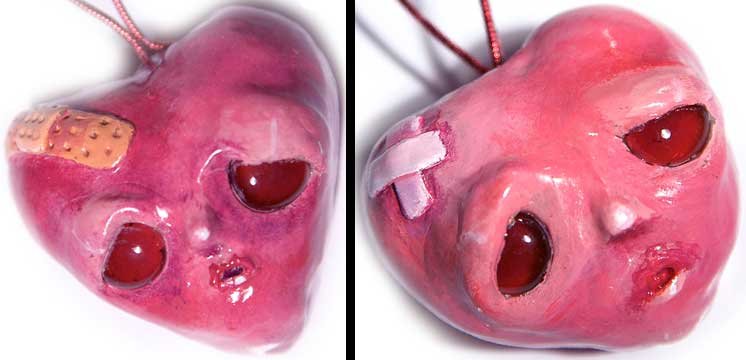 wood, yarn, crystals, glitter, acrylic,18kt gold paint, glaze, glitter, string