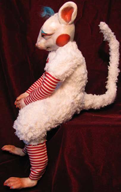 ![]() “Dormouse” paperclay, wire armature, fabric, mohair lock (10.5” high) $275 |