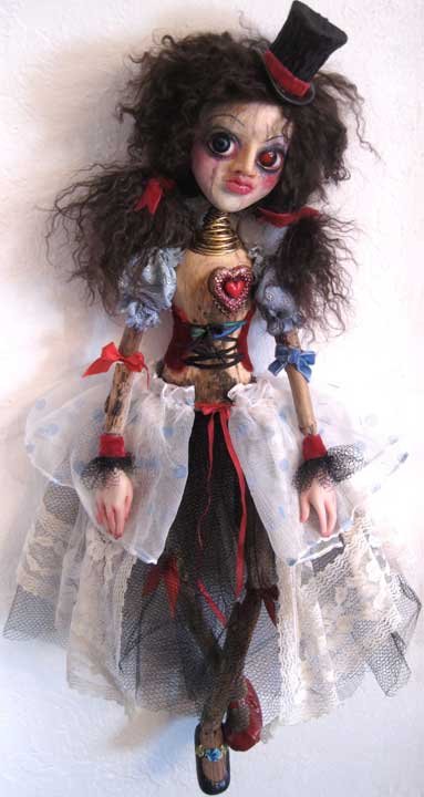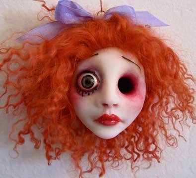 ![]() "What Now" german polymer clay, paint, human hair, glass eyes, vintage fabric $320 |