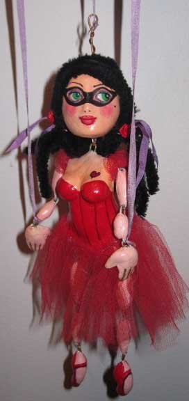 ![]() "Sasha" german polymer clay, paint, fabric, ribbon $120 |