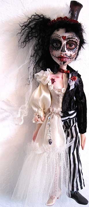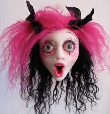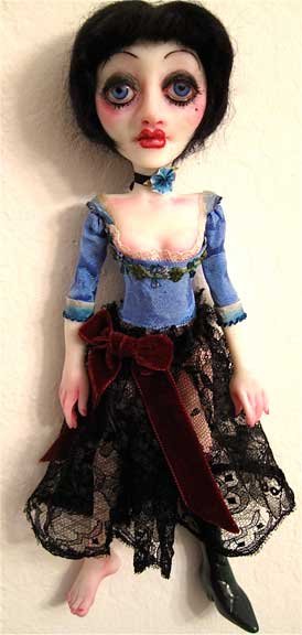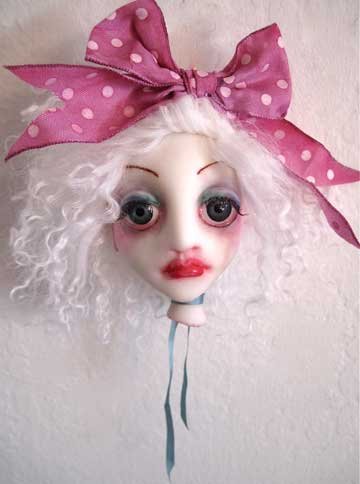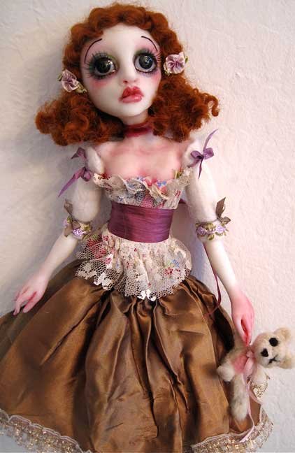 ![]() "La Vie En Rose" german polymer clay, paint, human hair, glass eyes, vintage fabric $325 |