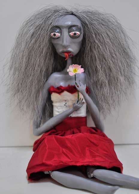 paper clay, synthetic hair, acrylic (3"x13") $490