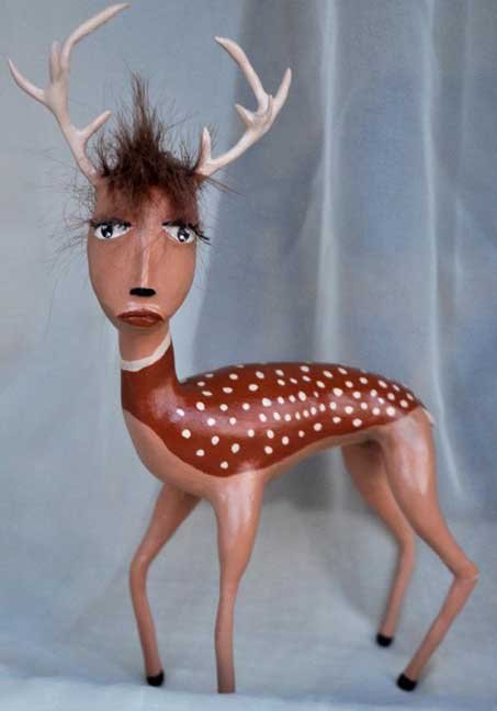 paper clay, synthetic eyelashes & fur, wood, acrylic (3.75"x7")