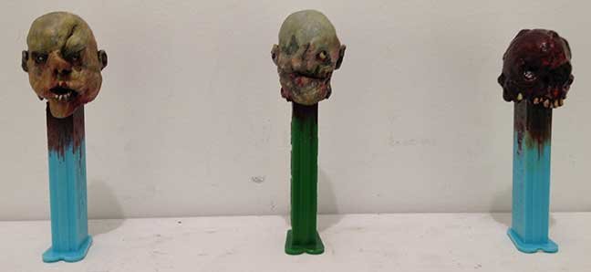 “Zombie Pez Dispensers” sculpey, acrylic paint, plastic $50 each