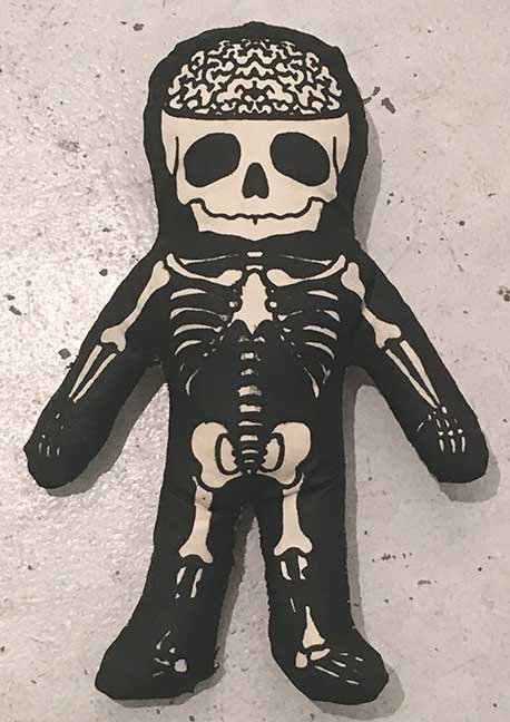 “Baby Skeleton” screen print on canvas, plastic bag stuffing $40