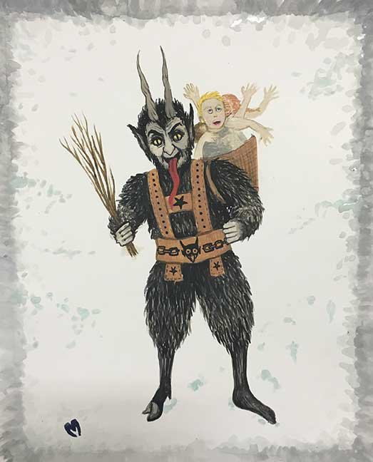 “Who's Been A Naughty Boy??” acrylic on paper (8”x10”) $120
