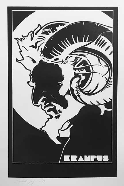 “Krampus Popstar” screen print on fabriano heavyweight paper $40