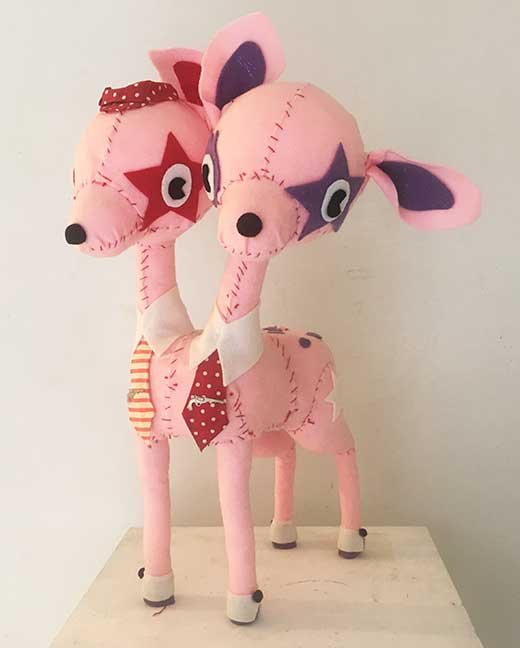 “Two Headed Deer” felt and mixed media $5,000