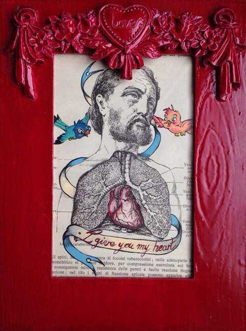 “I Give You My Heart” acrilico su carta antica (18x25cm) / acrylic on antique paper (7"x10") € 130