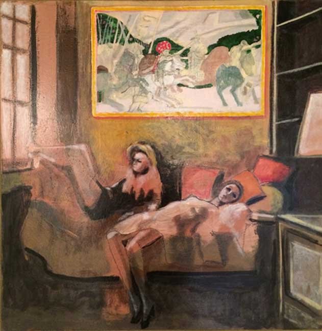 “Due Ragazze Con Paolo Uccello” olio su tela (65x65cm) / oil on canvas (25.5"x25.5") € 500
