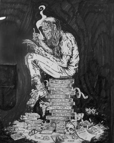 “DDC Zombie” Ink on Paper 12"x15" (framed) $250