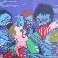 In hopes that we could use the fetid Gowanus canal as a barricade from a future Zombie attack, we have moved MF Gallery into the bigger and stronger "Fortress MF" in Brooklyn... But the putrid juices from the canal actually seem to be making them stronger! The Zombie Plague is not over! There is little hope left for the human race... Prepare for ZOMBIES ATTACK BROOKLYN!!! This zombie themed art show will include pieces by: Dave Brockie, Johnny Crap, Dennis Dread, Bob Gorman, Moses Jaen, Matt Maguire, Drew Maillard, Casey Orr, Bianca Panzram, Elmer Presslee, Putrid, Pasquale Reca, Mark Riddick, Jesse Riggle, Brad Roberts, Lou Rusconi, Martina Secondo Russo, Frank Russo, Joe Simko, Heather Watts, Jeff Zornow & More. The Opening Party, on Saturday June 26th from 7 to 10pm, will be an actual Zombie Attack!! DETHRACE will play a set of Zombie Slaying Death Metal, guaranteed to soothe the savage creeps! There will also be professional Zombie FX make up artists on hand to "Zombify" any willing guests! Admission is Free and open to all ages. Anyone (over 21) in full zombie makeup will get Free Beer all night! "Zombies Attack Brooklyn" will be on view at MF Gallery until July 25, 2010, by appointment only. Contact Martina or Frank at (917)446-8681 or email: info@MFgallery.net to make an appointment to see the show. The zombie art will also be available for viewing and purchasing online at: www.MFgallery.net DETHRACE is a theatrical art rock experience... Ten foot tall fiberglass super-robots play 666 volts of ear blasting Heavy Metal Music! Mecronos growls out the vocals, while Electronos shreds on electric guitar and Acronos pounds on the bass. All this is accompanied by an electronic drum track, while Necropatheos, the evil skull faced creator of the band, rocks out with the crowd. MF Gallery is located at 213 Bond Street, between Butler and Baltic Streets in the Gowanus area of Brooklyn, NY. Take the A to Hoyt/ Schermerhorn, (Exit at Schermerhorn and Bond. Walk South on Bond for 8 blocks.) the F or G to Bergen, (Exit at Bergen and Smith, walk 2 blocks east on Bergen. Turn right on Bond. Walk south on Bond for 3 blocks.) or the R to Union. (Exit at Union and 4th ave. Walk west on Union for 3 blocks. Turn Right on Bond. Walk North on Bond for 4 blocks.) For more information, appointments, to request high resolution images or to set up interviews, please contact Martina Secondo Russo at info@MFgallery.net or (917)446-8681. |