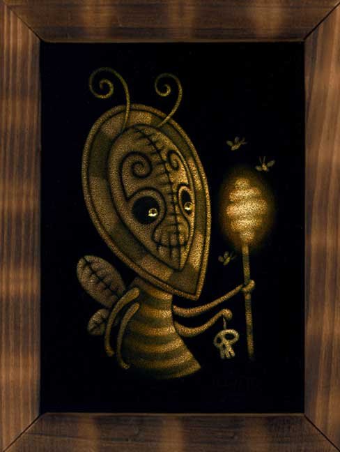 “Zombee” Acrylic and Rhinestones on Black Velvet (5”x7”) $160