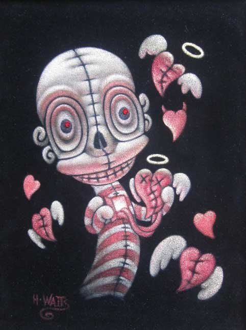 “Zombie Heart” Acrylic and Rhinestones on Black Velvet (7”x9.5”) $260