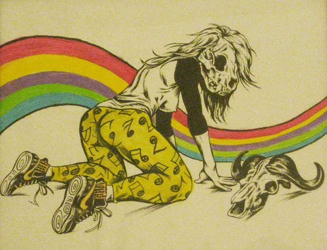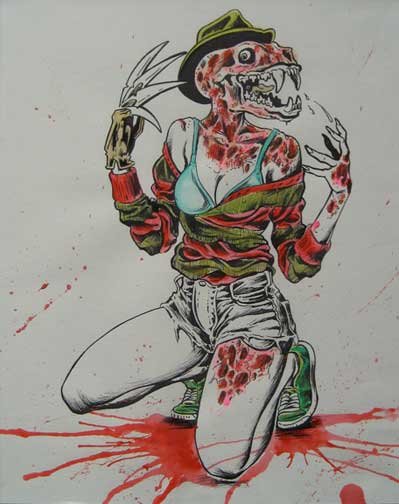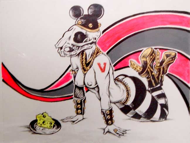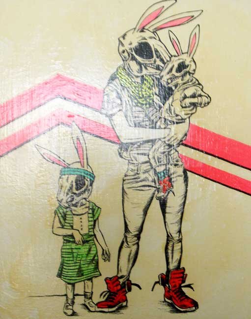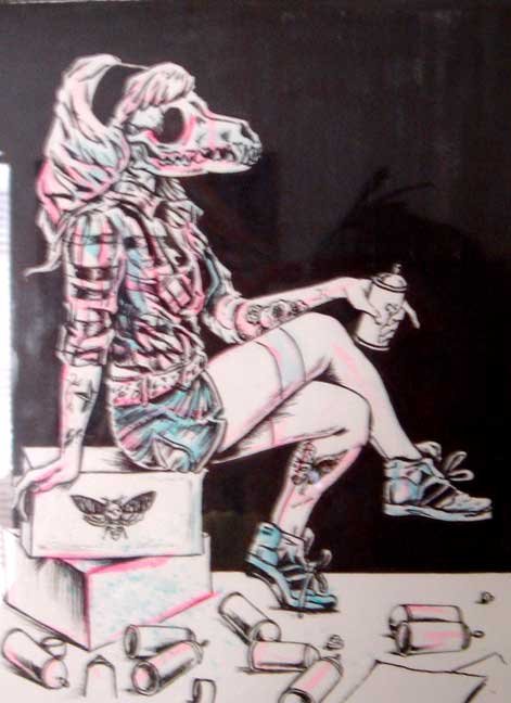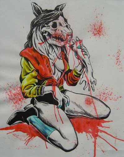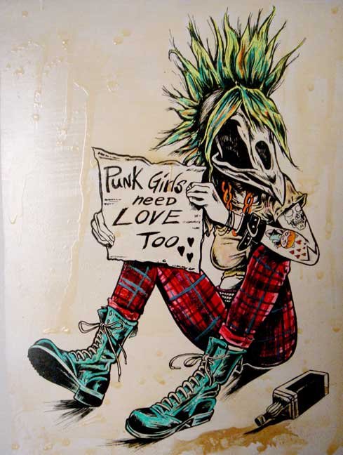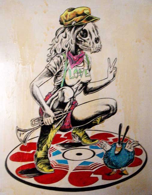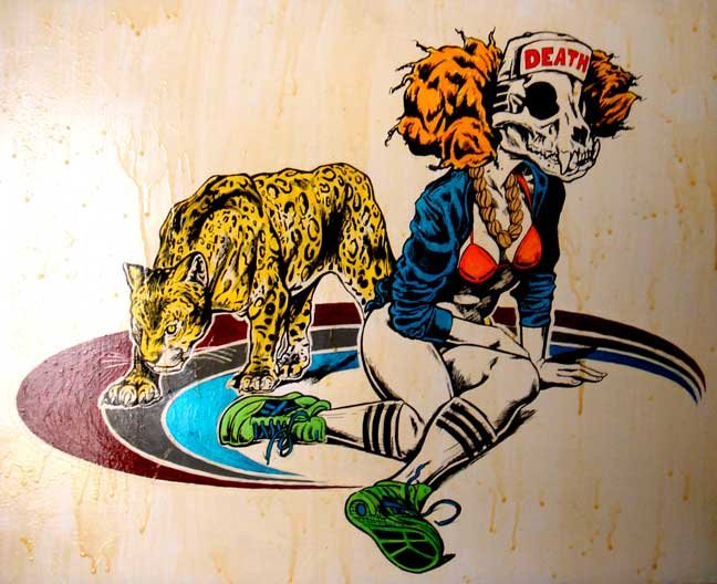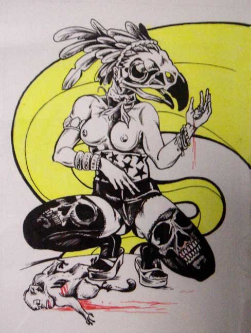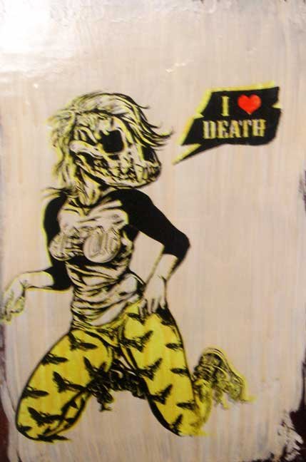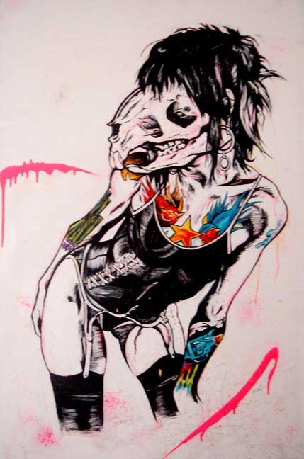 THE DEATH HEAD (A.K.A. ALONSO ESTRADA) grew up in Mexico and found inspiration for his artwork from the Day of the Dead holiday traditions, also embracing the Punk Rock movement's attitude. He Expresses these interests in his art, while interpreting the brutal, primal and animalistic side of the human form.